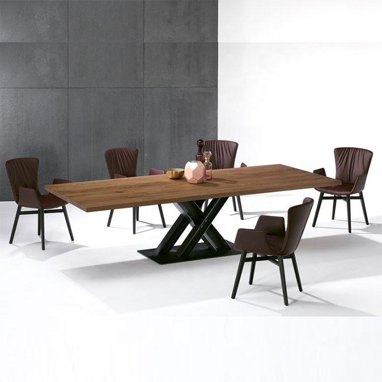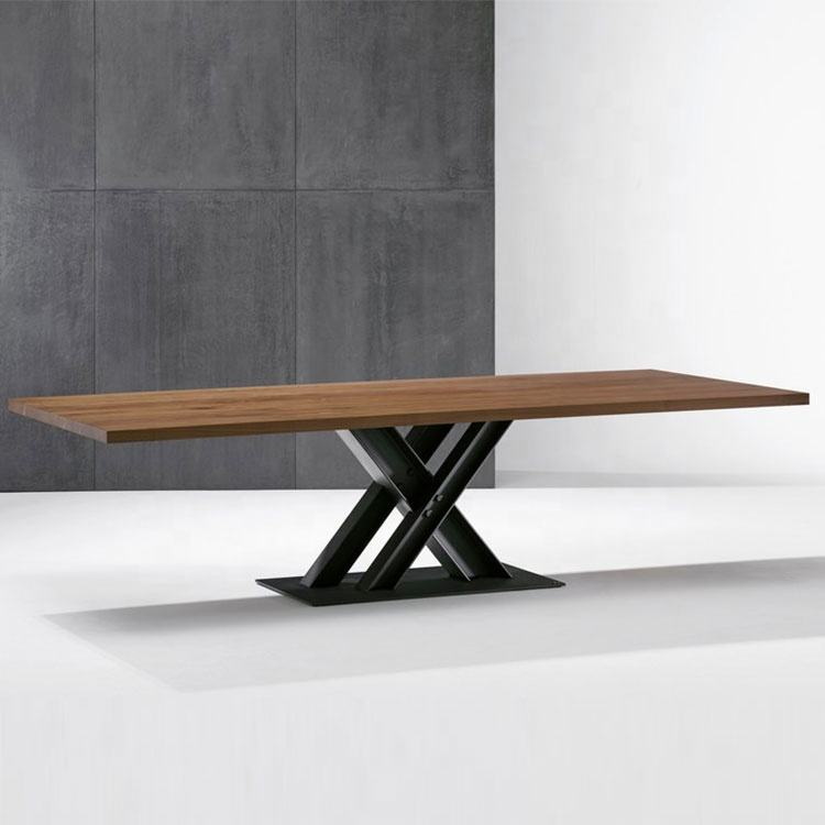 X Shaped rectangular wolid wood dining table modern design for 10 seater customize size hotel restaurant table