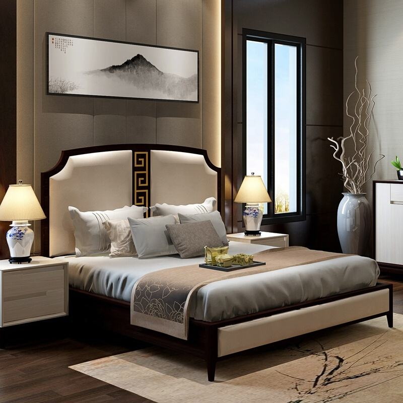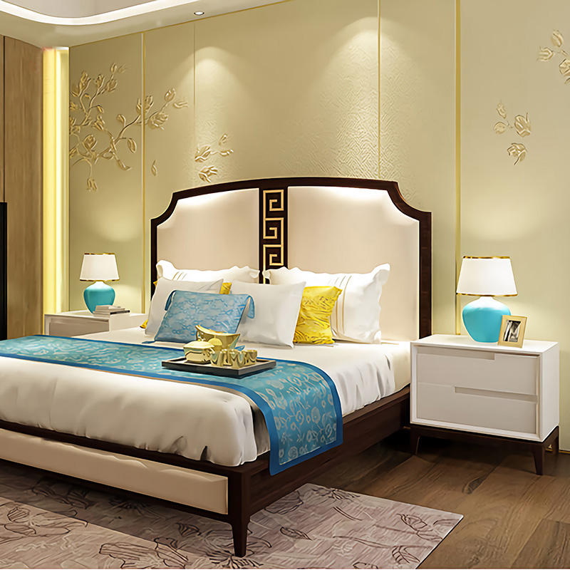 Customized professional good price of adult wooden latest wooden double bed home bedroom furniture set