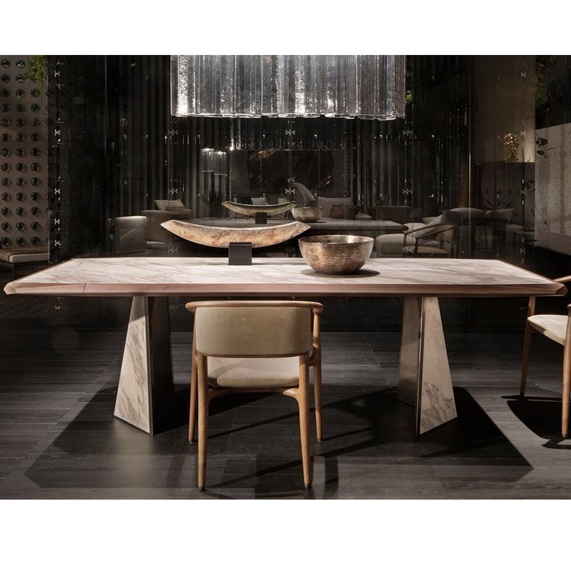 Luxury Royal furniture Rectangular dining table solid wood and marble restaurant tables modern dining set