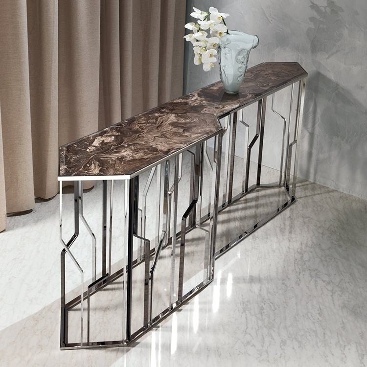 Modern home decoration marble console table hot sale wall side table stainless steel commerical furniture hotel