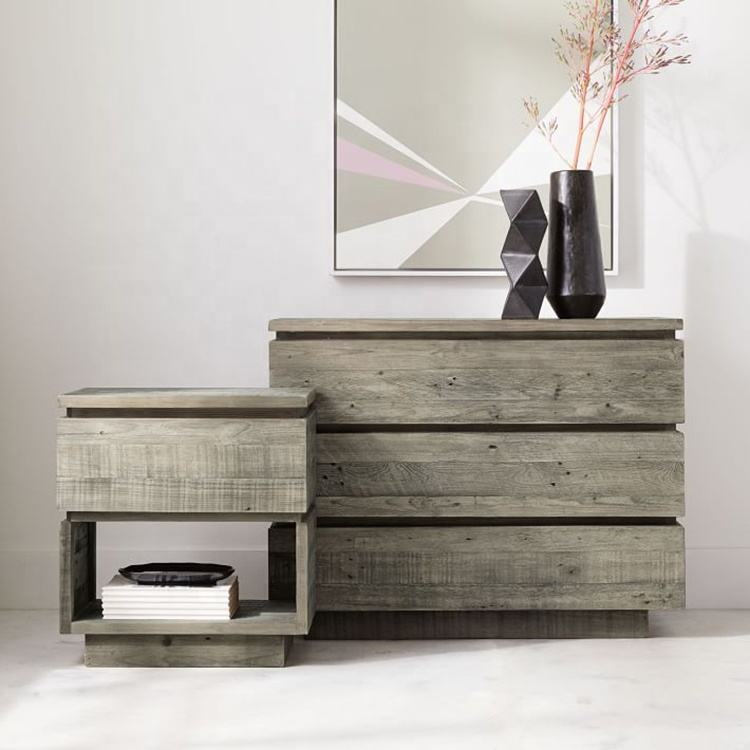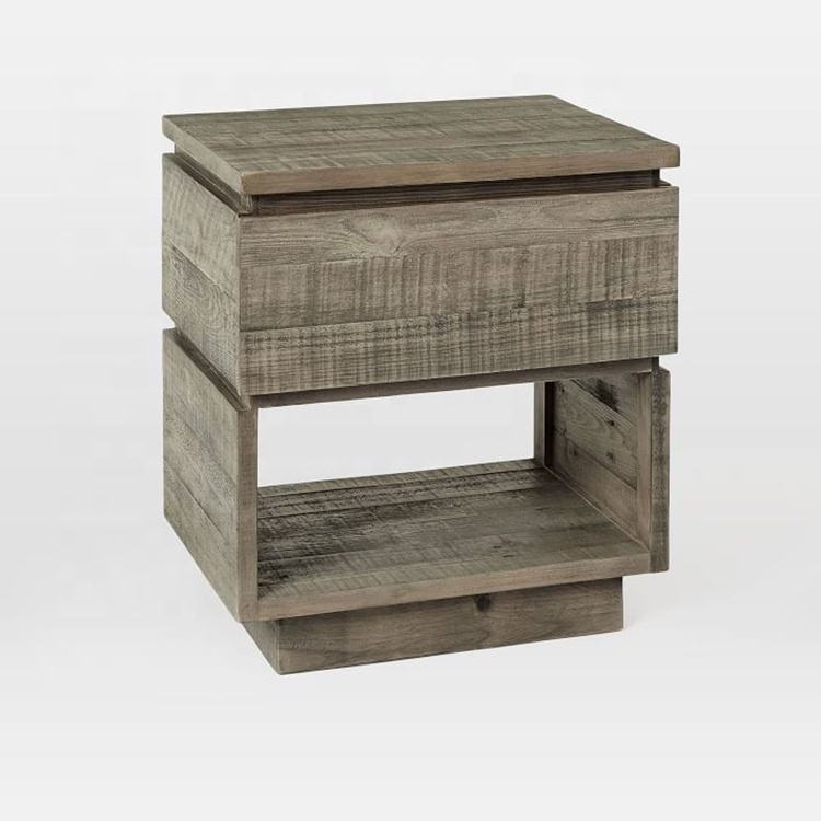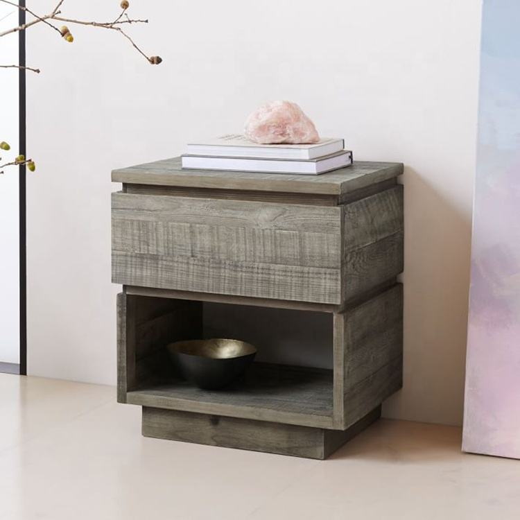 Stone grey modern nightstand rustic style bedside cabinet a drawer and an open bottom shelf