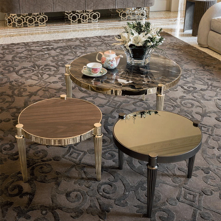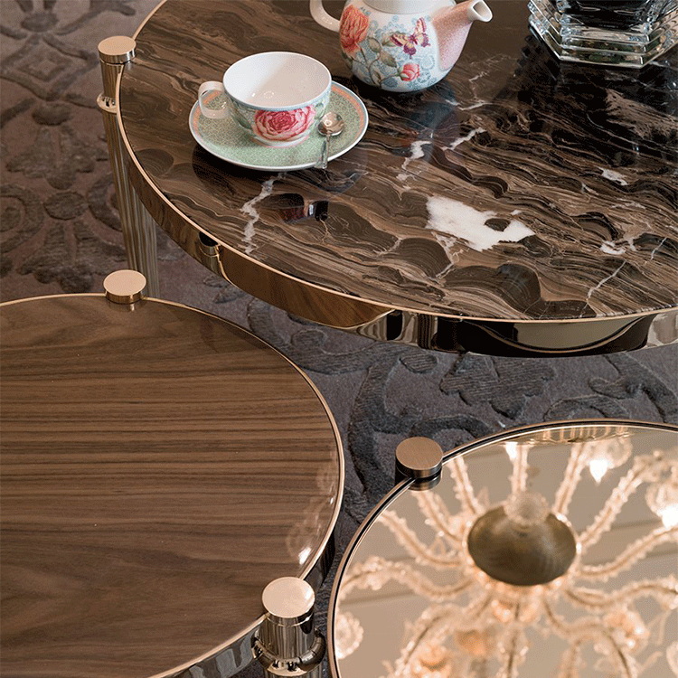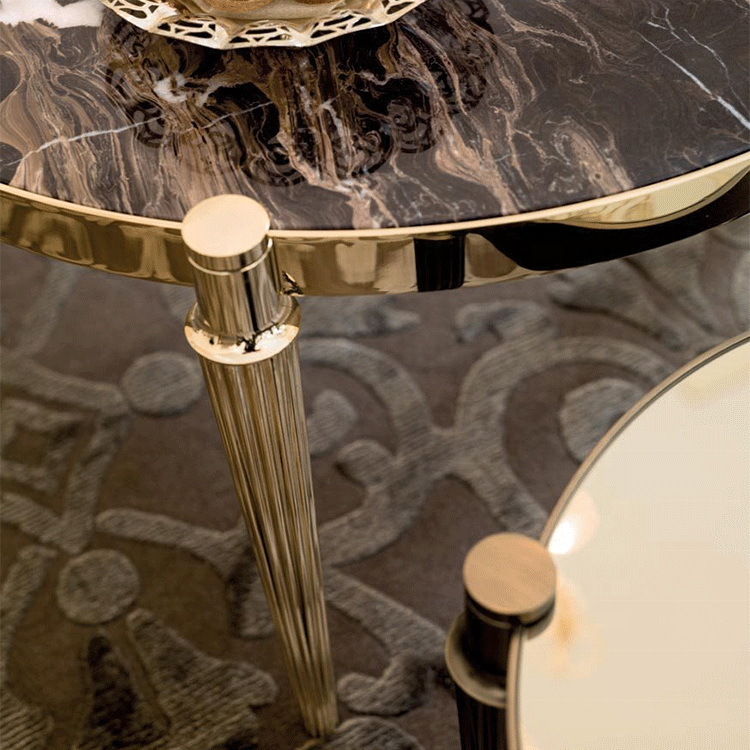 Small stainless steel mable circle tea table living room side tables first class furniture light luxury home decoration