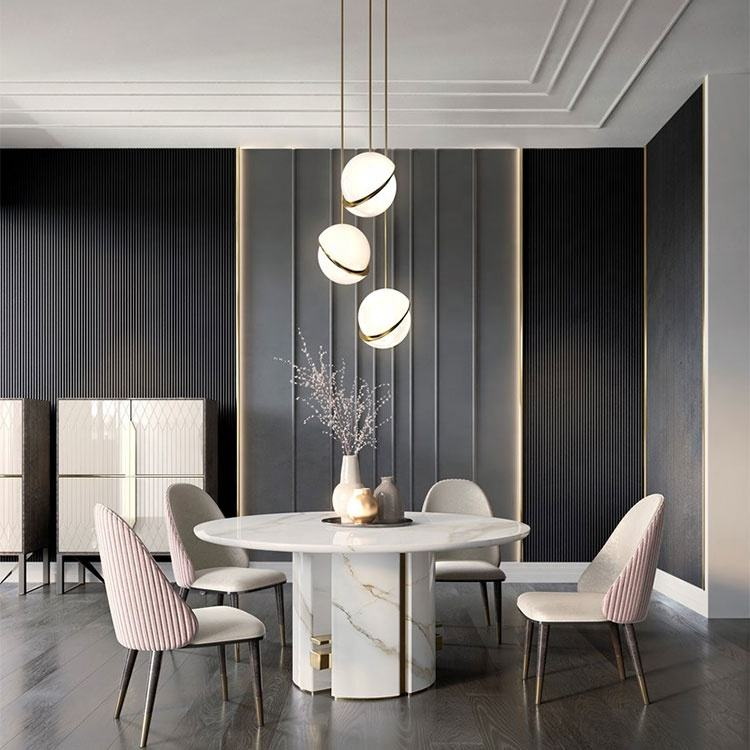 Black marble simple design idea dining table for 6 seater small space apartment restaurant modern contemporary style