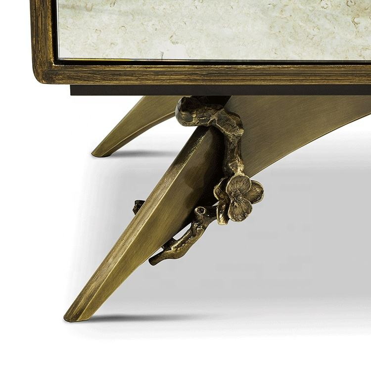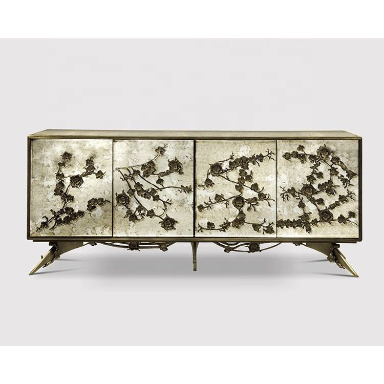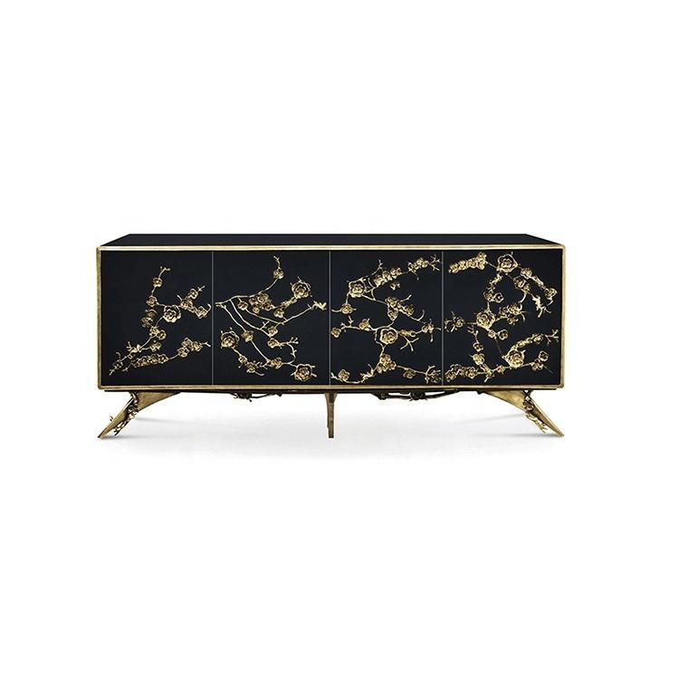 Luxury neoclassic sideboard living room decoration side cabinet TV stand with copper