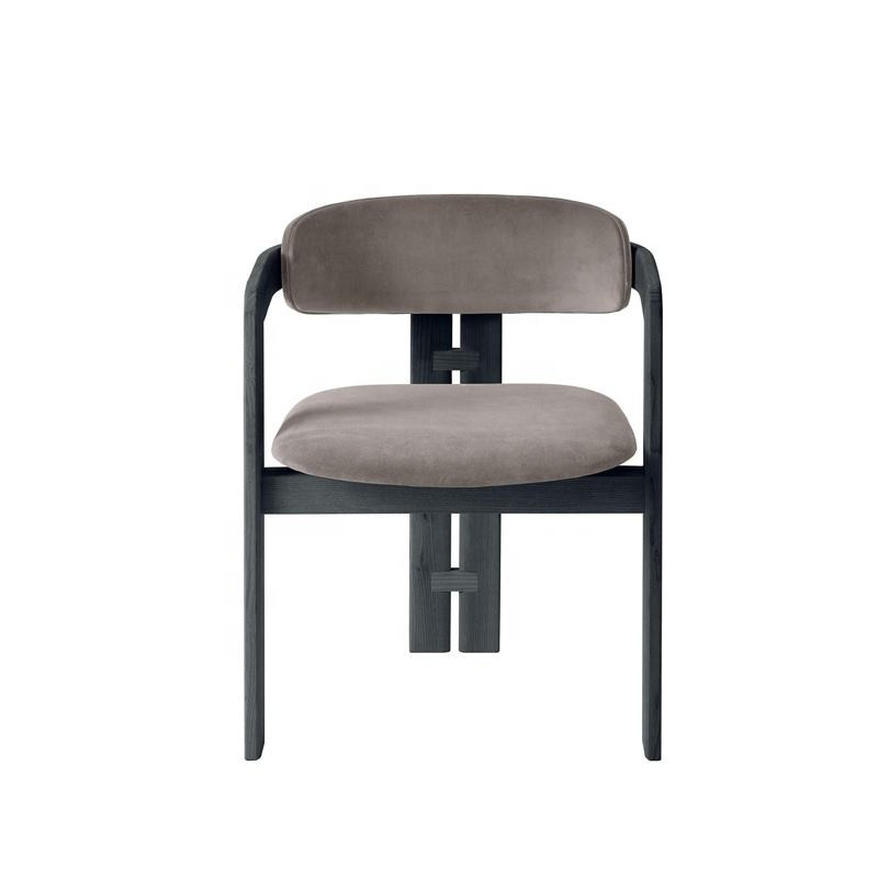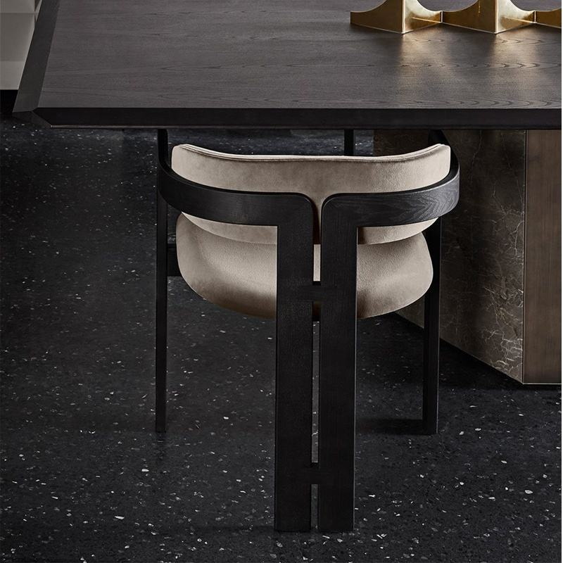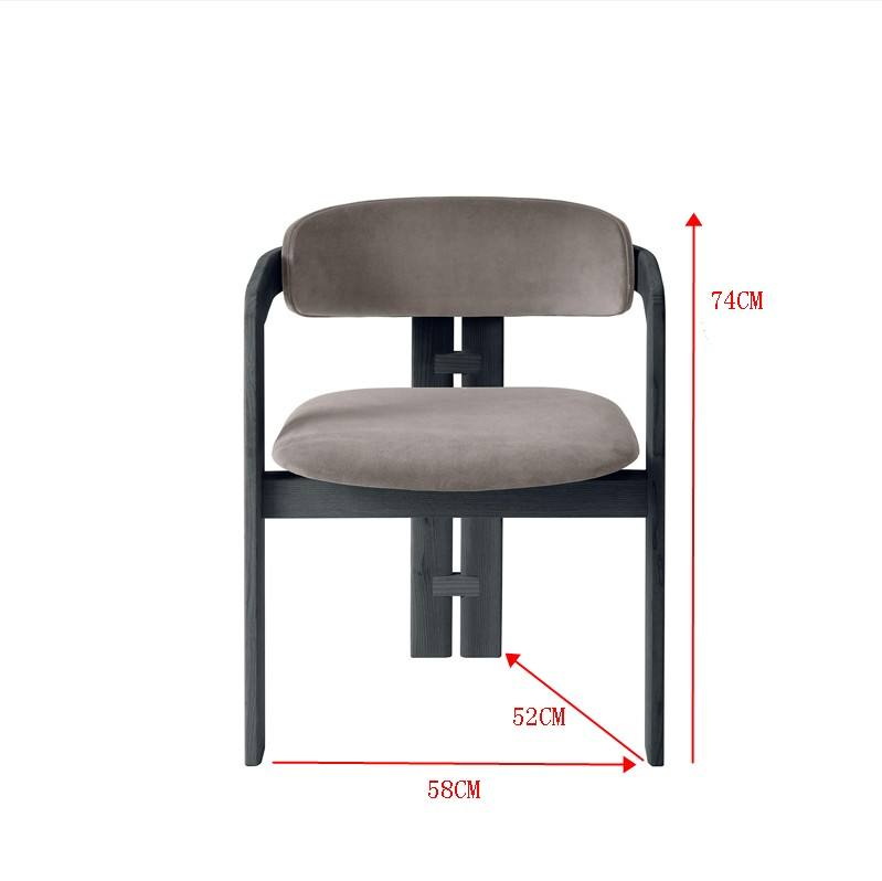Black solid wood frame dining chairs with beige fabric Nordic Light luxury dining chair household back stool