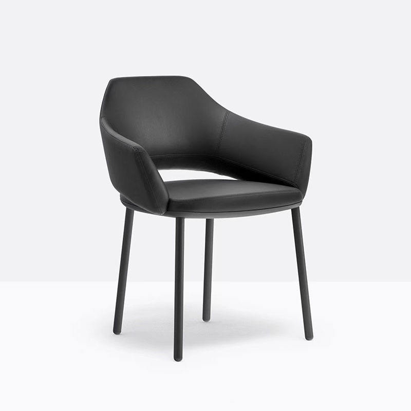Black leather upholstered dining chair with armrest simple type Leisure chairs for hotel room cafe room home furniture